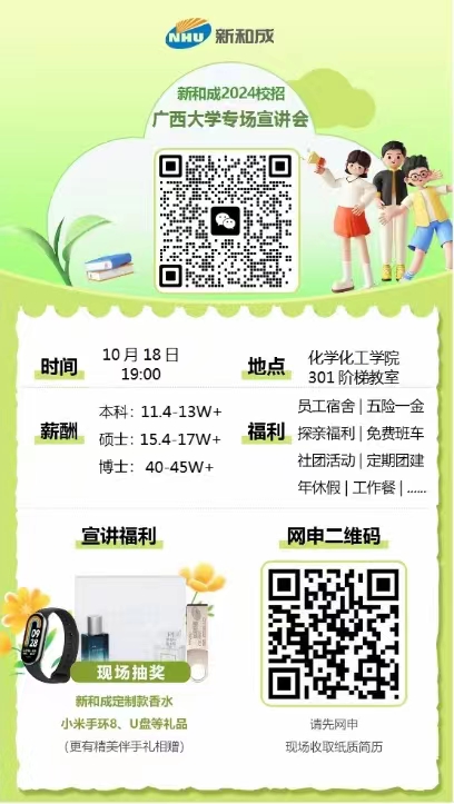 【新和成2024届校园招聘宣讲会】-广西大学站,欢迎各位同学参加!