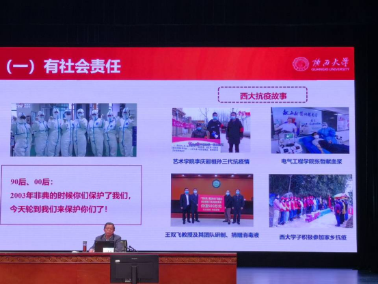 刘正东书记的报告演讲深入人心,使会场同学们感悟良多,深受启迪,引发同学们广泛热议。其中,电气类206 班宋格说,刘书记结合当下的时情以及所做的调查,一针见血地指出了当代大学生存在的问题。当代大学生正处于中国发展的关键时期,必须要完善自己,争取为祖国建设贡献自己的一份力量。电气类203班韦淳凡说,作为一名刚刚走入大学的学生,对于我们应该做什么,怎样做仍然存在很多困惑,而今天刘书记,用自己丰富的人生阅历和理论知识给我们从当下与未来多角度告诉我们要做一个有理想有追求的人。电创201班乌广平说,会有凌云当头志,回首甘来莫等闲。听了今天刘书记的一番话,着实令我感受颇深。作为西大的一名学生,我知道这是最好的舞台,这是最广阔的舞台,这是尽情散发魅力、实现人生理想的舞台。电气类205班肖嘉睿说,会上,刘书记提出新时代“五有”领军型人才的要求,期待我2020级学子能立足于世界,展望人类文明的未来,为家国奋斗终生,我们班同学都深受鼓舞。电气类208 班陈宇霄说,作为一个目标还不太明确的大一新生,刘书记的讲话让我有了更明确的目标,让我知道了在大学除了学习,还要积极参加各种社会实践活动,提高自己的综合素质。电气类204班李林说,刘书记说的很多内容都让我警醒,以“格局决定结局”“今天决定明天”等主题,通过国家对当代大学生更高的要求,以及大学对毕业生更严格的筛选,警示我们应该把精力主要放在学习上,同时强调了锻炼身体的重要性。电气类202班李子珍说,我们要努力克服大学生入学综合症,德智体美劳全面发展,有足够社会责任感,怀家国情怀,向抗疫英雄学习;有法治意识,对法律发自内心的认可、崇尚、遵守;有创新意识,于百年未有之大变局中以创新应对未知挑战;有实践意识,多接地气,拉近与社会的距离。