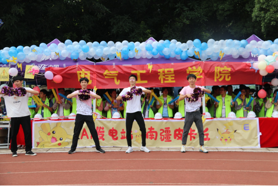我院运动健儿积极参加到田径、团体、素质项目中。上午10时整开始第一轮体育道德风尚奖评比。我院大本营布置精美、引人注目,同学们士气昂扬,热情高涨,伴随着高昂的鼓声高喊“源生八桂,电气昂扬,光芒万丈,电耀南疆。”的口号。同时,我院啦啦队员们在大本营前表演了活力四射的啦啦操,极力展现着青春与活力,团结与友爱。
