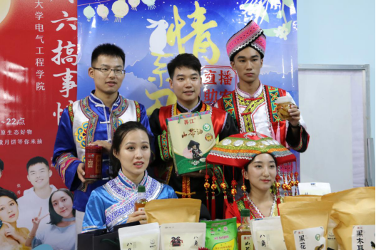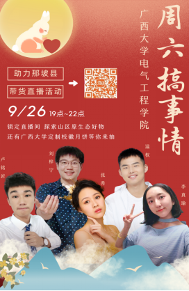 经教育部批准,由广西大学主办,广西大学电气工程学院承办的扶贫助农直播带货活动于9月26日19:00正式开始,来自电气工程学院的卢铭岩、李真瑜等五位直播“新生”作为本场直播活动的主播,身穿特色民族服饰,面对镜头侃侃而谈。