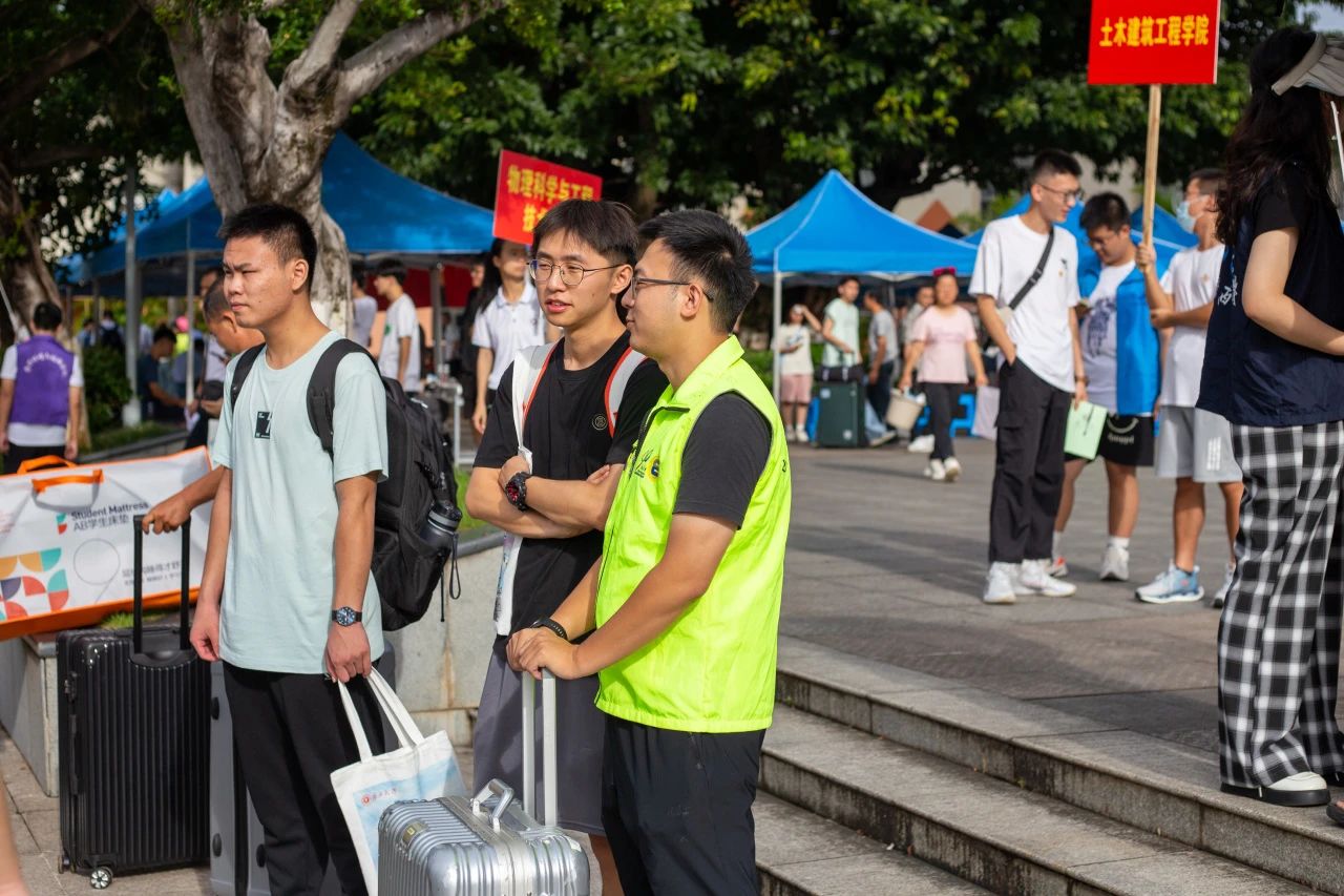 我院积极响应学校统一部署,对到校新生实行“点对点”接送、开展“一对一”服务,帮助和指引新生办理报到注册手续、搬运行李、宿舍整理、熟悉校园等。穿着亮眼荧光绿马甲的志愿者们穿行于人群之间,不断为新生答疑解惑、帮助新生搬运行李、引导新生到达报到点,成为了校园迎新一道亮丽的风景线。