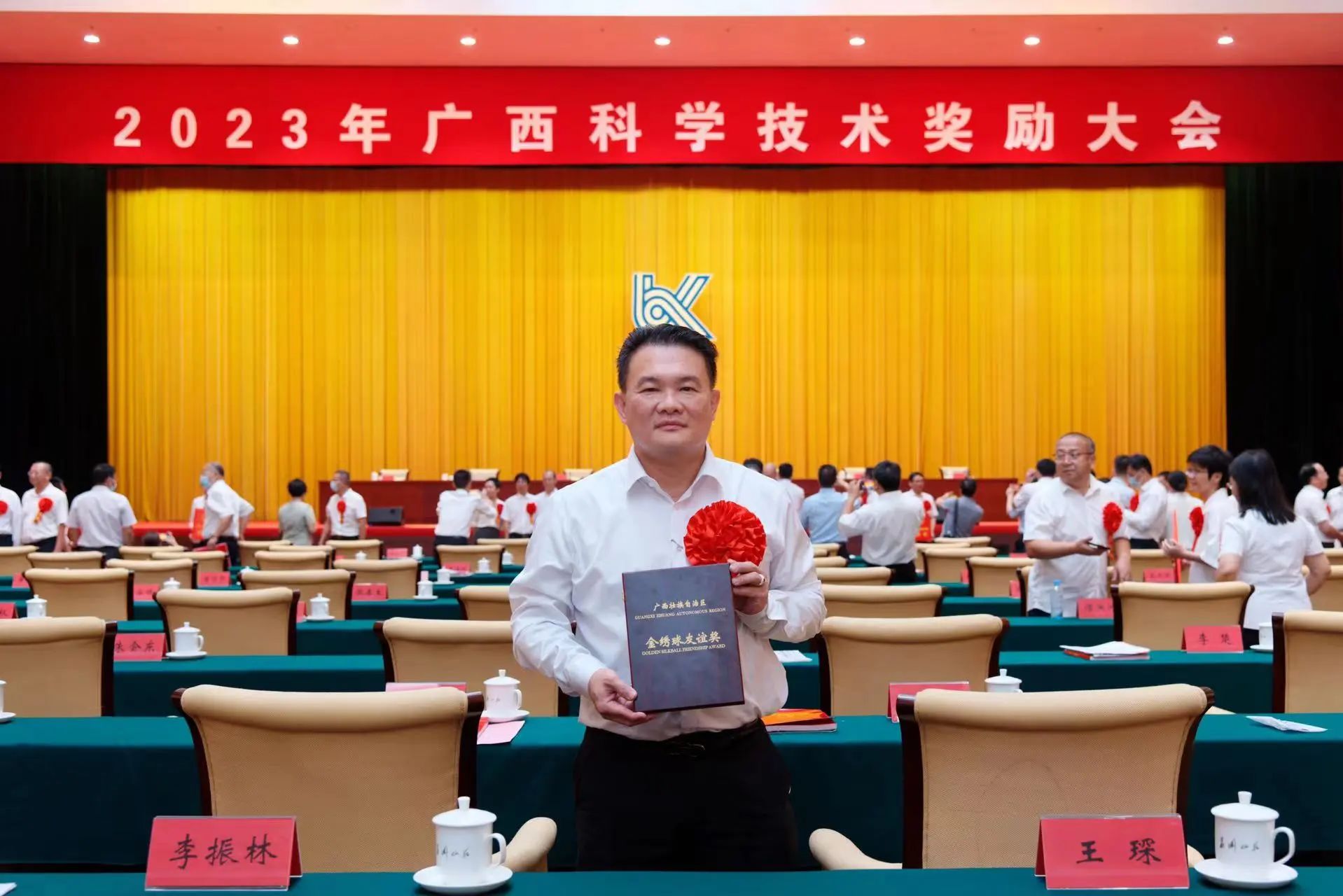 广西“金绣球友谊奖”是广西壮族自治区人民政府为表彰奖励对广西经济建设和社会发展、特别是科学研究和技术创新作出突出贡献的优秀国(境)外专家人才和友好人士而设立的奖项,表彰周期为2年1次。