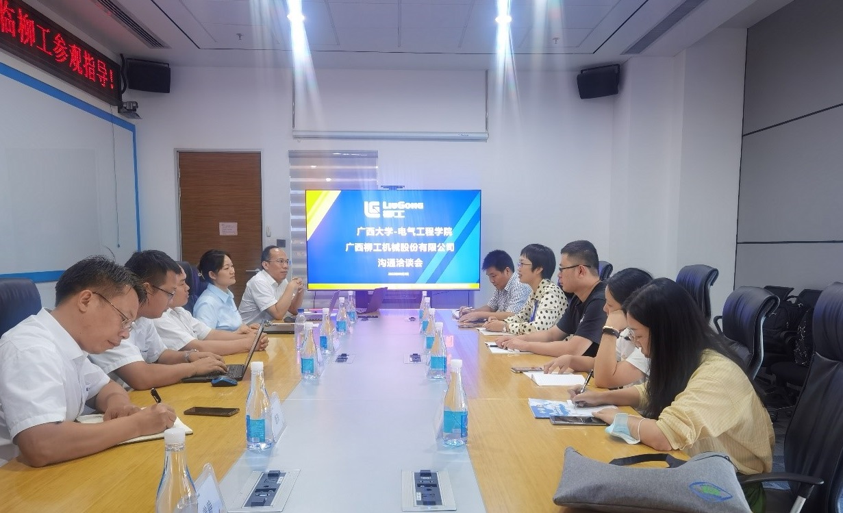 为拓展校企协同育人资源,加强高校服务地方企业需求,丰富校企合作平台。9月3日下午,在学院胡立坤副院长的带领下,自动化系5位教师赴柳工集团进行调研交流活动。广西柳工机械股份有限公司柳工全球研发中心副总工程师蔡登胜、柳工农业机械股份有限公司总经理蒋仁科、柳工全球研发中心控制产品与应用研发总监陶林裕、柳工全球研发中心平台技术总监唐涛、柳工全球研发中心人力资源总监彭丹莉与我院教师进行了深入的交流。