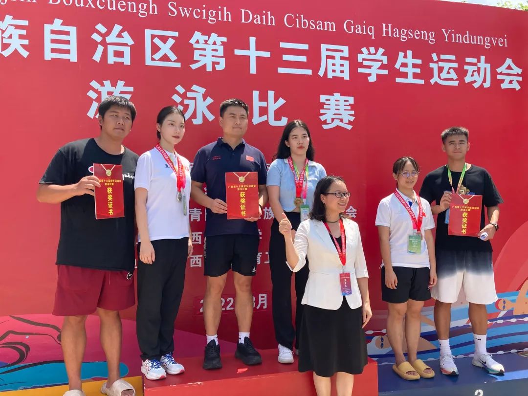 2022年8月21日至23日,由广西壮族自治区教育厅、广西壮族自治区体育局、共青团广西壮族自治区委员会主办的广西第十三届学生运动会游泳比赛在广西民族大学拉开帷幕,我院电自196班李若婷在比赛中发挥出色,荣获两银四铜的好成绩。