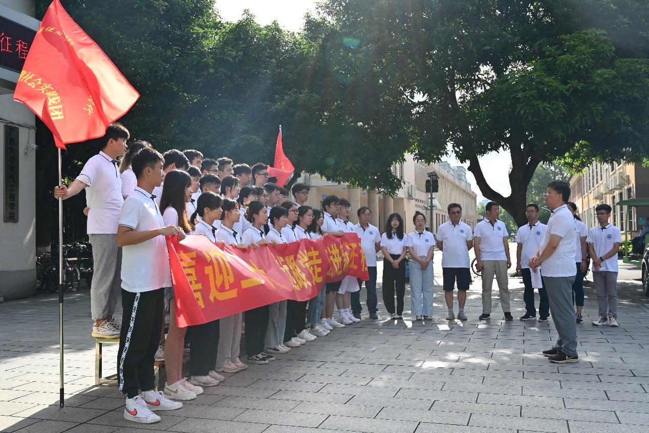 7月12日上午,为确保我院“喜迎党的二十大,永远跟党走,奋进新征程”学生暑期社会实践活动能安全高效、稳健有序进行,我院在实践团开赴贵州兴义和广东阳江开展活动前举行出征仪式。院党委书记梁志坚出席仪式为师生送行并发表讲话,院长助理李畸勇、阳育德副教授、高级工程师施武生、团委副书记蒋冬连、辅导员李娟、辅导员李鹏、辅导员李楠、辅导员韦俞妃以及暑期社会实践团全体学生参加出征仪式。本次出征仪式由辅导员魏书颂主持。