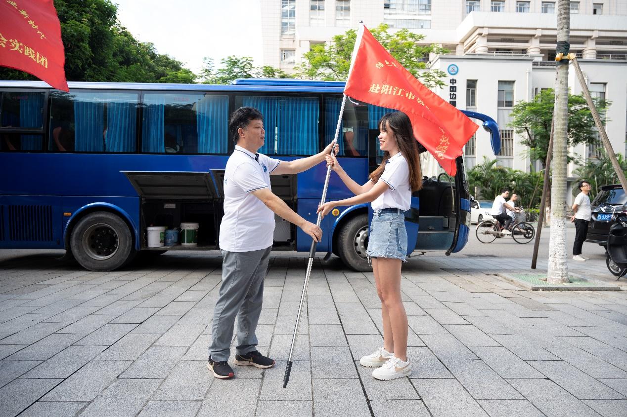 最后,梁志坚书记为社会实践团队代表授旗,并与社会实践团全体成员合影留念。