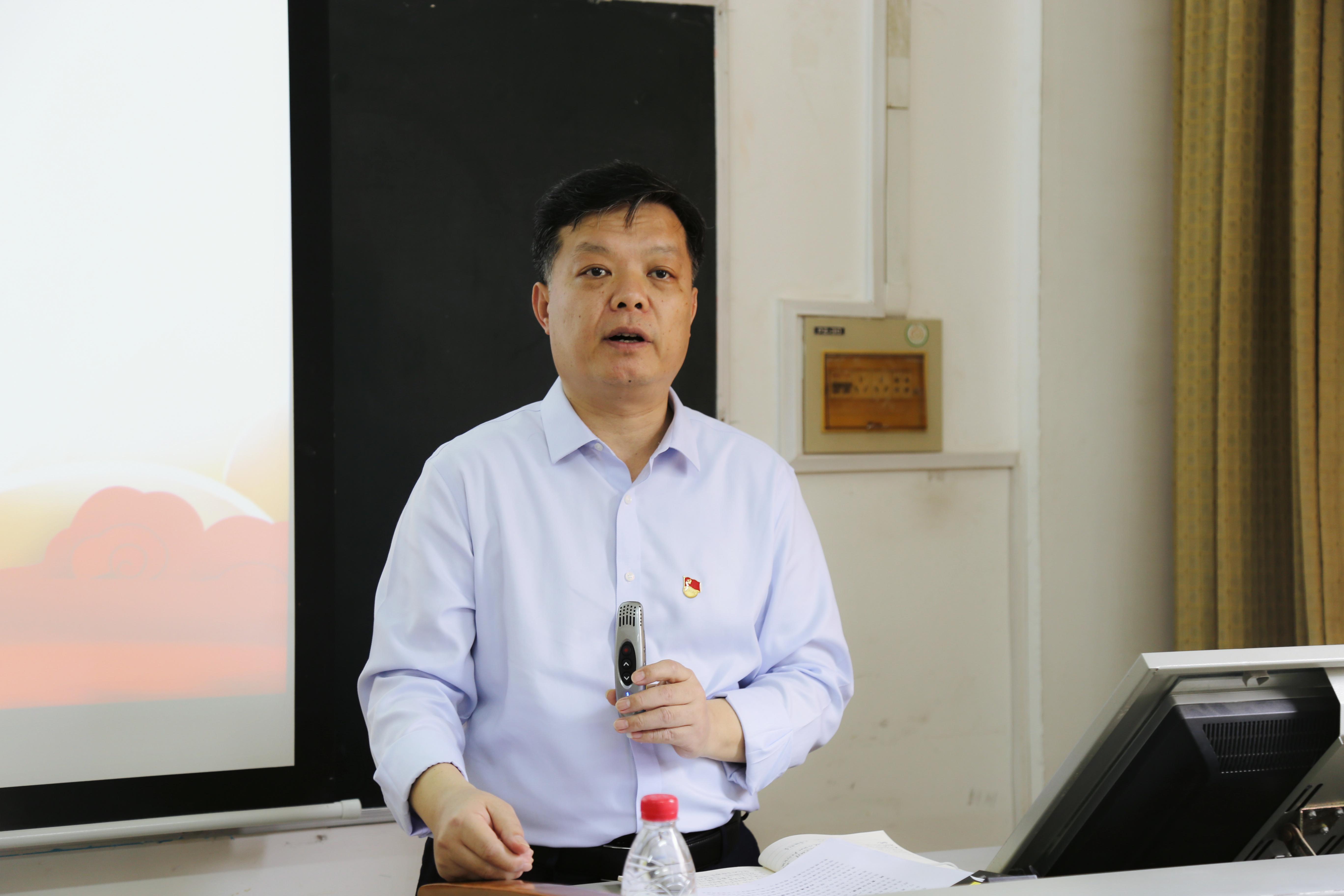 会上,院党委书记梁志坚先对本院党员分类管理、重新调整支部构成工作安排进行了详细说明。学院党委十分重视教师、学生党支部的科学化管理和支部建设工作,通过多次会议讨论决定对学生支部进行拆分管理、严格把控支委的遴选,以选优配强的方式调整研究生和本科生的支部书记,保证各支部建设的未来发展。梁志坚书记希望在座支部委员能在这次会议中向此次获评第三批全国党建工作样板支部——研究生第二党支部学习建设经验,树立好支部建设目标,向优秀学习,踏实做好各项工作,“跳起来摸高”,不断创先争优。他针对支部建设工作提出了具体要求:强调学生党支部工作要加强党的全面领导,突出政治建设,做好理论学习;党员管理过程中注重立德树人,激发党员活力,为学科专业和国家培养人才;学生支委要重视党支部的建设工作,按要求落实“三会一课”制度,强化规范;根据学生情况设立党员志愿服务岗,增加“党员亮身份”等活动,努力向榜样看齐。