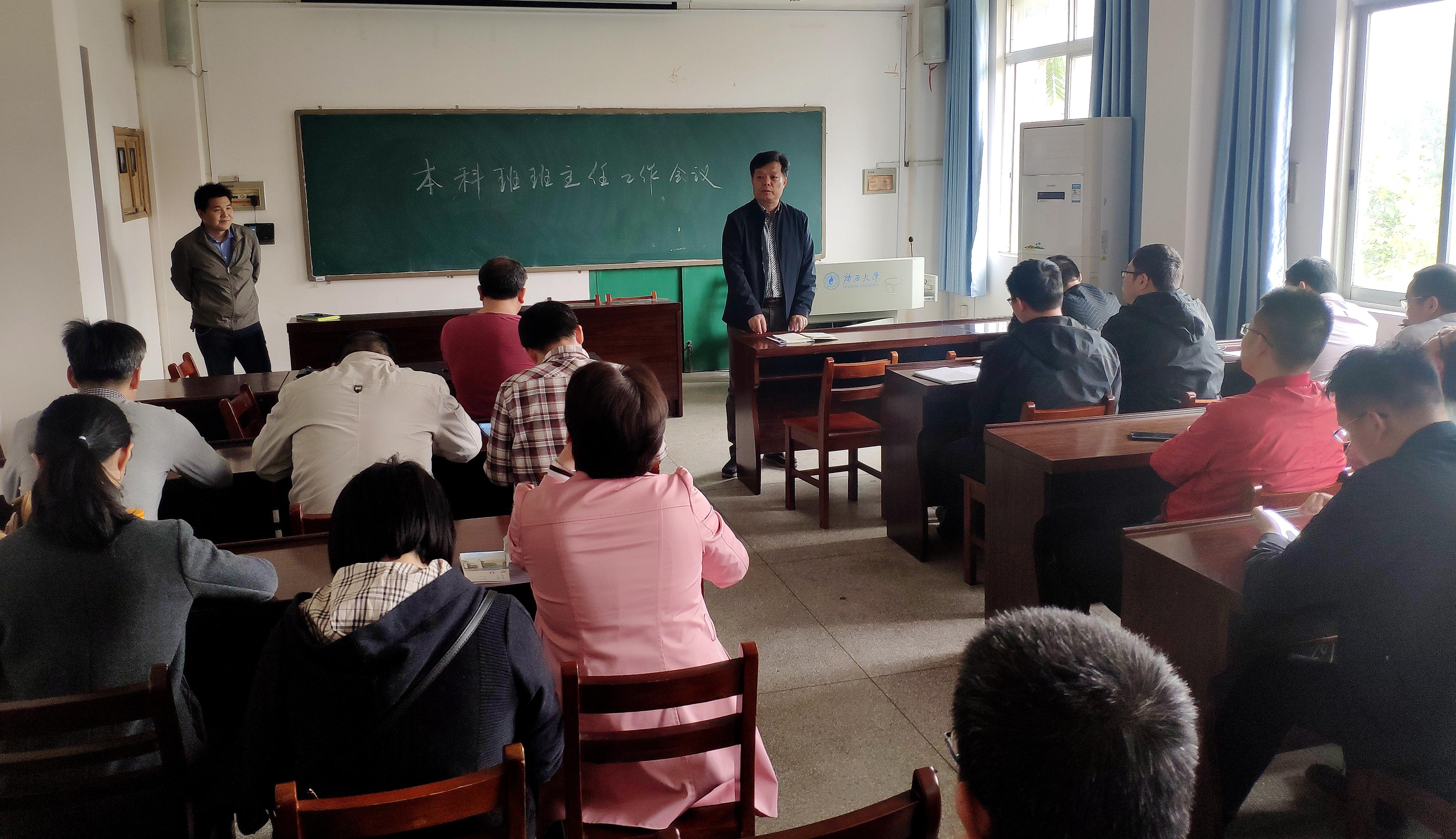202146日下午在学院楼207室召开本科班班主任工作会议,参会的人员有主管教学的胡立坤副院长、主管学生工作的梁志坚副书记,以及各个年级的本科班班主任。会议由胡立坤副院长主持。会议议题是在学业帮扶活动中班主任如何发挥应有的帮扶作用。