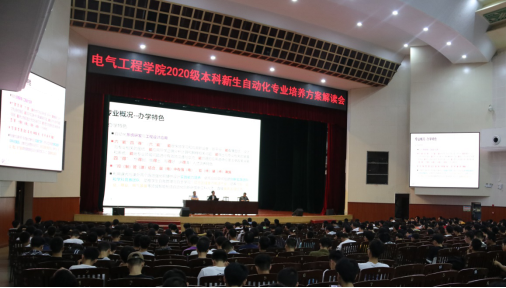 116日晚7,电气工程学院2020级本科生自动化专业培养计划解读会”在大礼堂顺利召开。学院自动化系主任李修华,自动化系副主任卢泉、韦善革,以及学院2020级全体本科生参加本次大会。