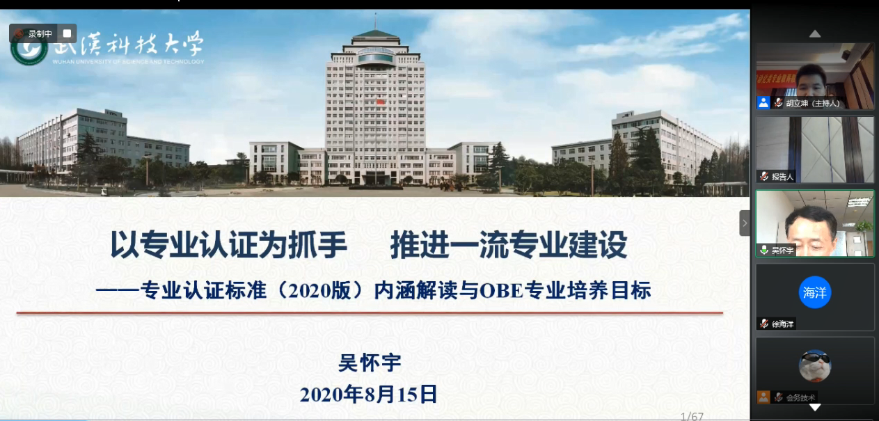 1. 以专业认证为抓手,推进一流专业建设----武汉科技大学副校长吴怀宇教授