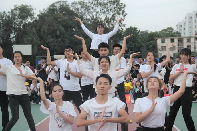 下午6点,比赛项目接近尾声,同学们期盼着最激动人心的闭幕式颁奖环节的到来。学院啦啦操队的劲歌热舞将现场气氛推向高潮。