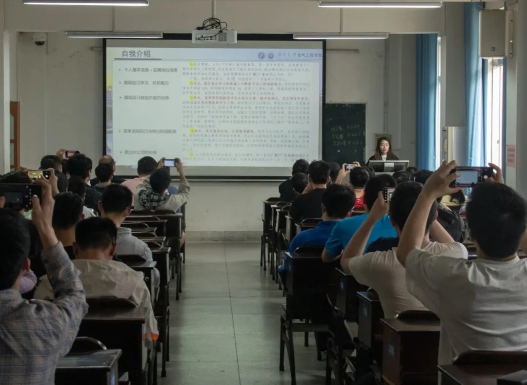 随后,现已成功签约就业的电自203班张春华同学为大家分享了自己的求职经历。她向大家详细介绍了自己在正式签约南方电网公司前,在网申、笔试、面试、体检、确认offer等不同环节的经验。张春华同学最后提醒大家要端正态度,做好充分准备。