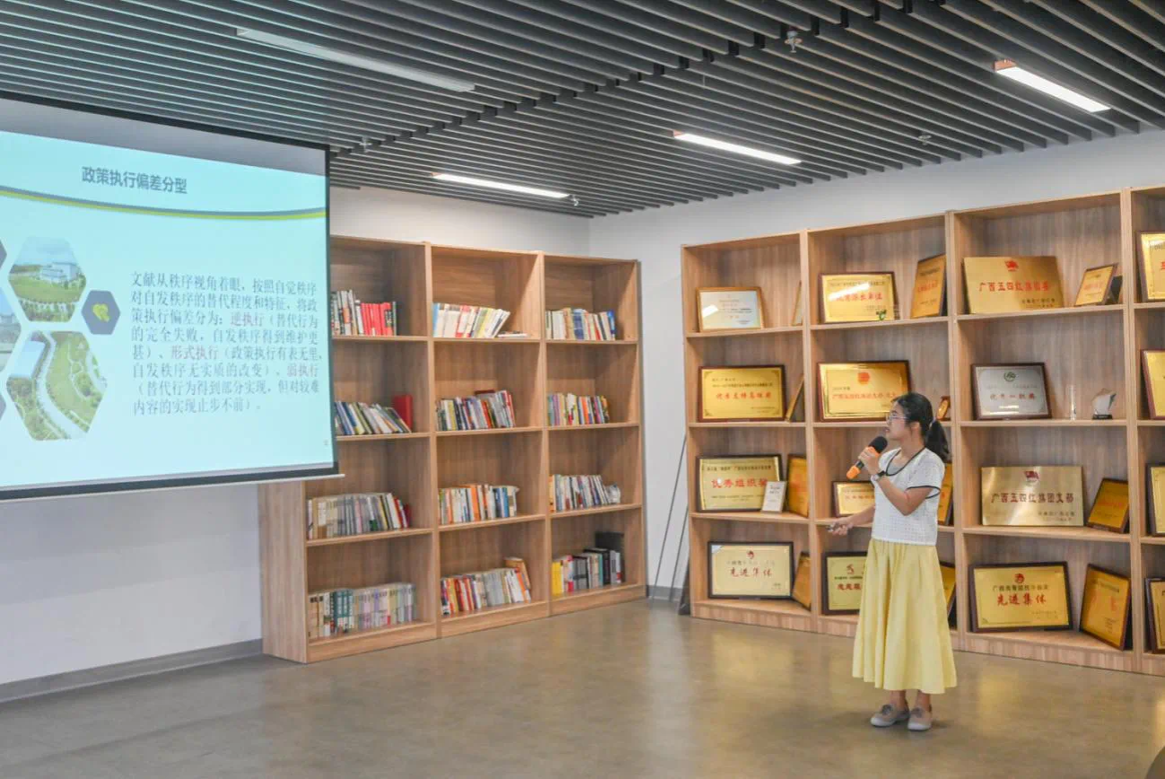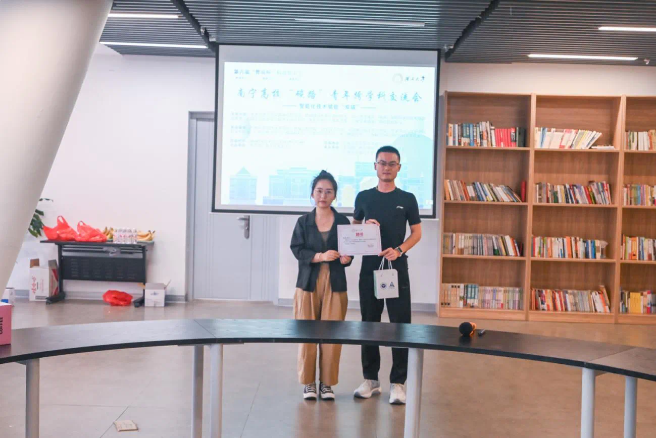来自广西大学电气工程学院的黄羡飞分享了《基于通信策略的船助无人机巡检方案研究》,设计了使用船和无人机对海上风电场中的故障巡检方案;广西医科大学公共卫生学院的欧柳娟同学分享了在医学领域比较重要的数据库;广西民族大学电子信息学院的姚康同学分享了考虑智能负荷的频率响应资源优化调度方法;广西民族大学人工智能学院的周日飞同学介绍了他们利用人工智能技术开发的鹰眼警情分析系统;广西大学机械工程学院的赵星辰同学分享了利用微波热解系统,有效且低成本地将生物质原料转化为生物柴油的清洁实验;广西中医药大学公共卫生与管理学院的谢翠微同学结合广西多地分级诊疗建设情况,分享了调研的思考;南宁师范大学地理科学与规划学院谭家鑫同学运用地图可视化和莫兰指数分析,为制定碳减排政策提供建议;广西大学化学化工学院的徐爱浩同学分享了高效电催化CO2还原制备甲酸盐技术。