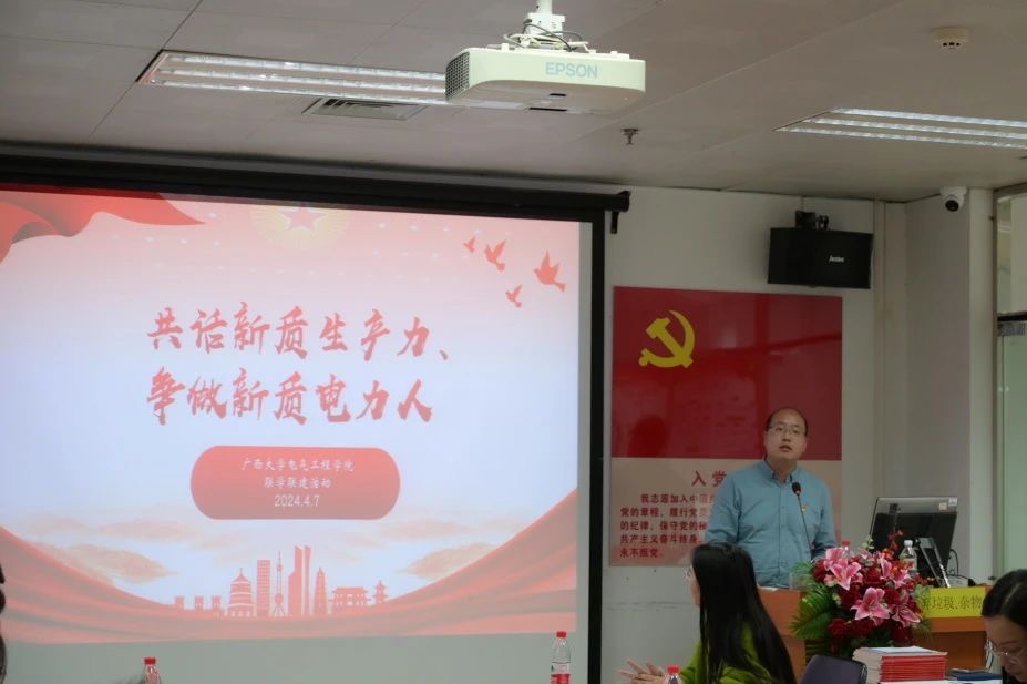 为深入学习贯彻两会精神,了解两会热点,共同探讨新质生产力在电力领域的应用,思考促进能源结构的优化和绿色低碳技术的推广激发行业人才的创新潜能,培养适应新时代要求的电力人才,加强党员、团员间的交流合作,共同为实现能源可持续发展目标和中国式现代化贡献智慧和力量,4月7日下午,我院在综合楼110党员活动室开展“共话新质生产力,争做新质电力人”党建活动。我院党委副书记李道洋、团委书记石建有、全国党建工作样板支部研究生第二党支部书记徐俊华、团委副书记兼本一支部书记蒋冬连、团委副书记兼研三支部书记李娟及学生会、研究生会、研究生第二党支部、本科生第一党支部的学生代表参加活动。 活动现场 活动开始,徐俊华老师分享了新质生产力的最新研究成果、前沿技术和发展趋势,回顾20年间广西电网的发展状况,分析政策对行业发展的导向作用,解读新质生产力在政策推动下的发展机遇和挑战,帮助同学们了解行业发展的宏观背景,把握未来的发展方向。 同学们认真听讲 随后,同学们研读学习了习近平总书记关于深入推进能源革命,统筹优化布局,做好电源侧、电网侧高质量发展的相关论述,及新质生产力相关的行业报告和通讯文稿等学习资料,分享各自的研读成果和心得体会,就资料中的主题进行深入探讨。大家踊跃发言,对当前特高压柔性直流输电技术、海上风电规模化、新型供电设备等新技术表达想法,对自动化、智能化和数字化坚强电网等新概念作出解读。 同学们分享感悟 最后,李道洋老师对大家的精彩发言作出点评与总结,表示这次活动让大家都受益匪浅,并鼓励同学们既要埋头实干,又要关注发展方向,要深入了解新质生产力的内涵和重要意义,把握新质生产力的实践应用和价值所在,努力为新质生产力的发展做出更大的贡献。 李道洋老师讲话 集体合照