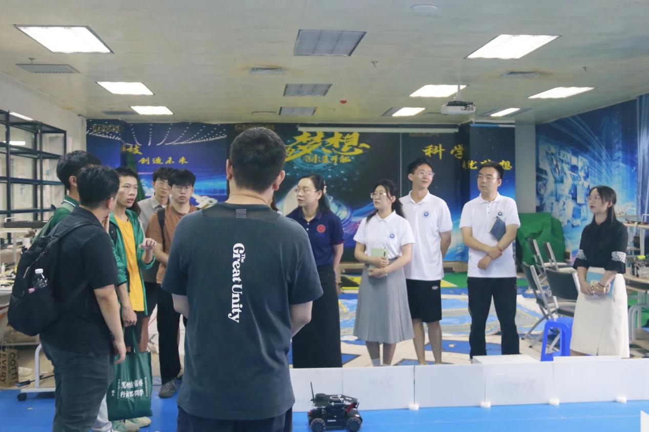 首先,中山大学微电子学院师生到学校综合楼参观众创空间。李勇老师介绍我院学生近年来参加竞赛的情况,以及“模拟去太空进行月球上的探索”的相关实验和有关自动化器械等知识,展示了我院浓厚的学术科创氛围。