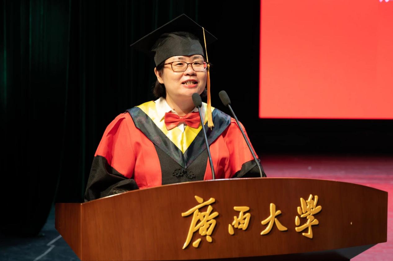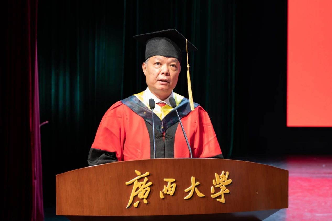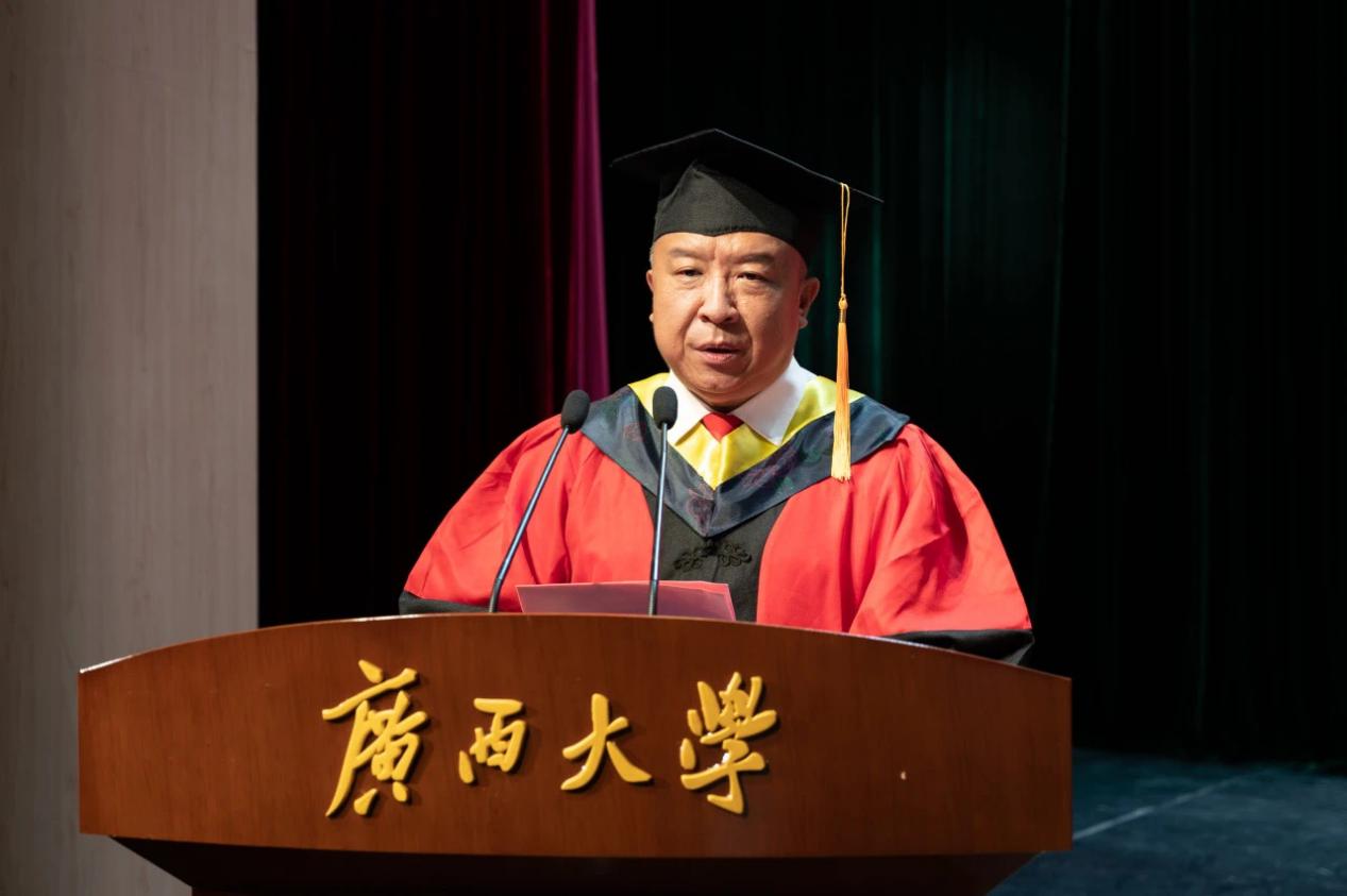 院党委书记梁志坚宣读2024年学位授予文件以及自治区级、校级优秀毕业生表彰文件,学院领导老师为获得“广西壮族自治区优秀毕业生”“广西大学优秀毕业生”的学生代表颁发证书。