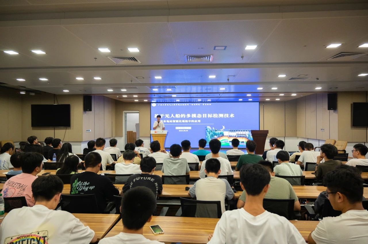 同样来自电自创221班的刘佳和同学,则热情洋溢地与同学们探讨了基于无人船的多模态目标检测与融合技术在水电站智能化巡检中的应用。他详细介绍了研究背景、现状、目的以及巡检过程中目标检测算法的改进策略,使同学们对智能巡检的具体含义和现实意义有了更深入的理解。