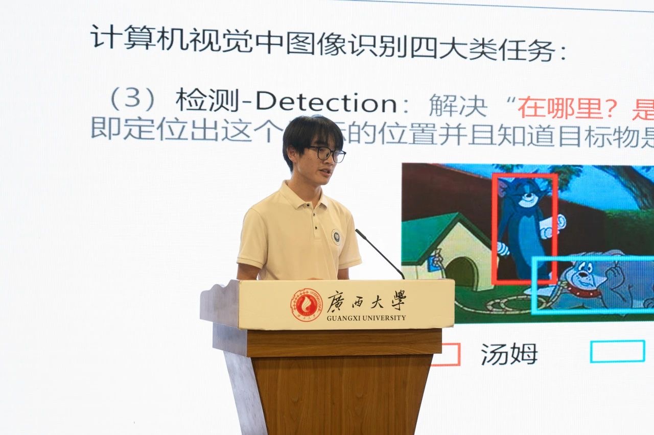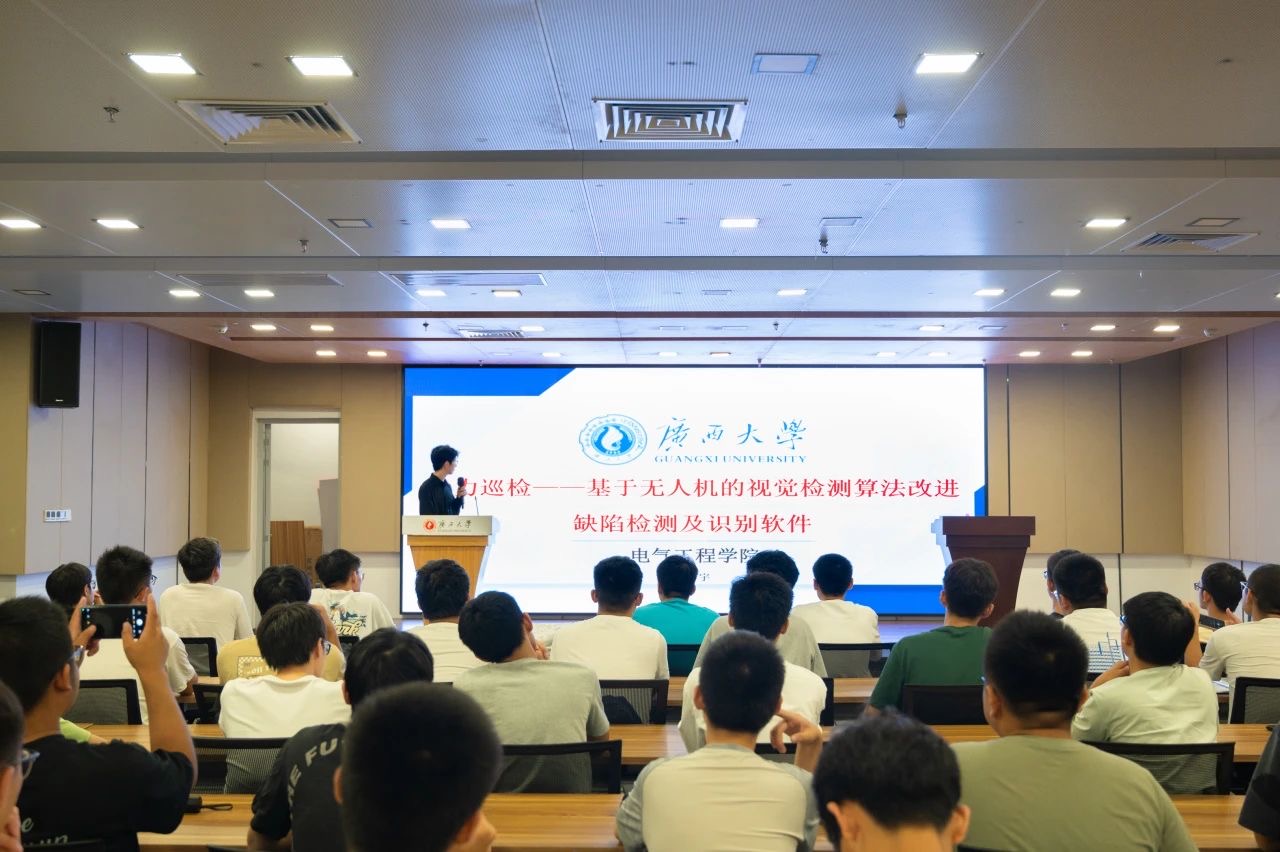 自电自创221班的过轩宇同学分享了自己在无人机电力巡检领域的研究。该研究致力于无人机巡检的创新,通过结合在线与离线检测方式,并自主设计无人机硬件及搭载边缘AI设备,实现了高效的图像数据采集与处理。他表示,基于YOLOV5n的目标检测算法经过改进,在电力巡检环境中表现出色