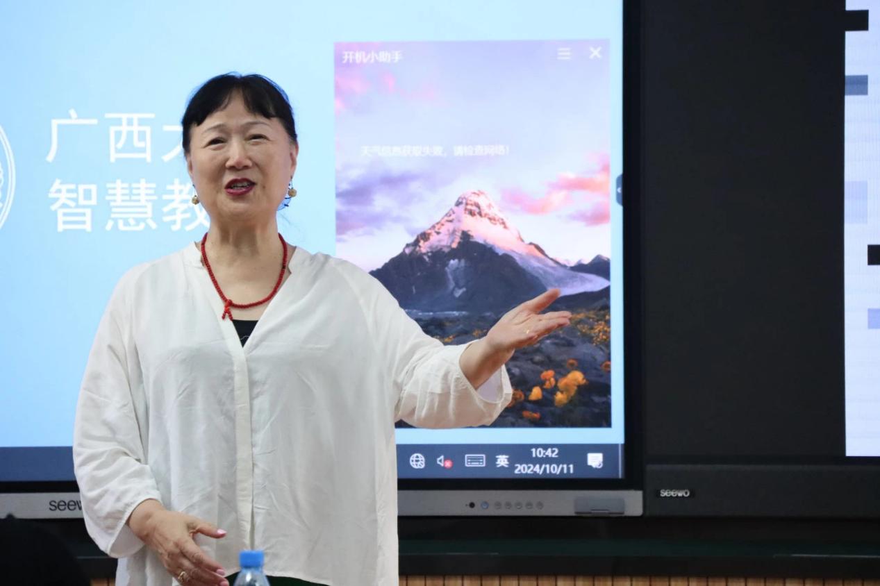 田伟、田灿是国歌《义勇军进行曲》词作者田汉先生的侄女,此行是受艺术学院张明学教授的邀请到广西大学做报告。