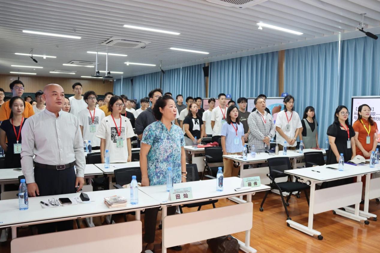 今年是新中国成立75周年,为激发学生爱国情怀,10月11日上午,我院在东十教10B-307智慧教室开展“田汉与国歌《义勇军进行曲》的故事”党性教育,特邀请田伟、田灿担任主讲嘉宾,学院党委副书记李道洋,艺术学院张明学教授,我院各党支部党员代表参加活动。