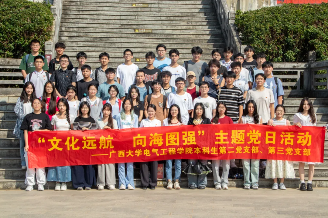 为深入学习贯彻习近平总书记重要讲话精神,让党员们亲身体验海上丝绸之路始发港的历史文化底蕴,感受广西向海图强的蓬勃力量,进一步激发党员的爱国情怀和奋斗精神,11月16日,我院本科生第二党支部(以下简称“本二支部”)与本科生第三党支部(以下简称“本三支部”)党员在本二支部书记冯敏老师、本三支部书记何惠榕老师的带领下前往广西合浦开展“文化远航,向海图强”主题党日活动。 出发前合照 党员同志们追随习近平总书记的脚步,来到“珠光帆影”——合浦海上丝绸之路文物精品展进行参观,了解每一件文物背后的故事。在与古代文物、历史遗迹的近距离接触中,党员同志们“和文物说话、与历史对话”,感受中华优秀传统文化的博大精深与源远流长,坚定了文化自信,激发党员传承好中华优秀传统文化和发展社会主义先进文化的奋斗热情。 参观博物馆 在合浦汉代文化博物馆汉代三贤馆里,党员同志们跟随讲解员的脚步,聆听合浦县汉代三贤马援、孟尝和费贻等廉政和英雄人物的故事,了解他们对于合浦县的发展所做的贡献,感受他们廉洁自律、勤政爱民的精神。通过三贤的故事以古育今,将文化教育和纪律教育等协同贯通,开展支部党员廉洁教育,巩固深化党纪学习教育成果。 参观汉代三贤馆 参观学习结束后,同学们在博物馆原地休整,并开展了“道中华杯”——铸牢中华民族共同体意识知识竞赛。本次竞赛将全体人员随机分为5个小组,通过组内晋级的方式展开激烈角逐,优胜劣汰,最终选出成绩最佳的同学。竞赛现场,同学们积极参与,踊跃答题。他们不仅展示了扎实的知识,更在互动中加深了对中华民族共同体意识的感悟。 手机答题活动现场 除此之外,本次活动也进行本二支部青年领学微党课的录制,持续打造支部特色名片,丰富学院党建宣传形式。依托青年领学,激发青年共学,实现青年成长。 视频拍摄现场 本次主题党日活动聚焦于促进民族团结,通过回溯汉代海上丝绸之路这一中华民族历史发展的辉煌篇章,将理论与实践紧密结合。在实践中,党员同志们加深了对铸牢中华民族共同体意识的重要意义和价值的认识。此次活动激发了党员同志们的奋斗热情,强化了责任担当意识,未来为新时代壮美广西的建设注入新的活力与动能。 集体合照
