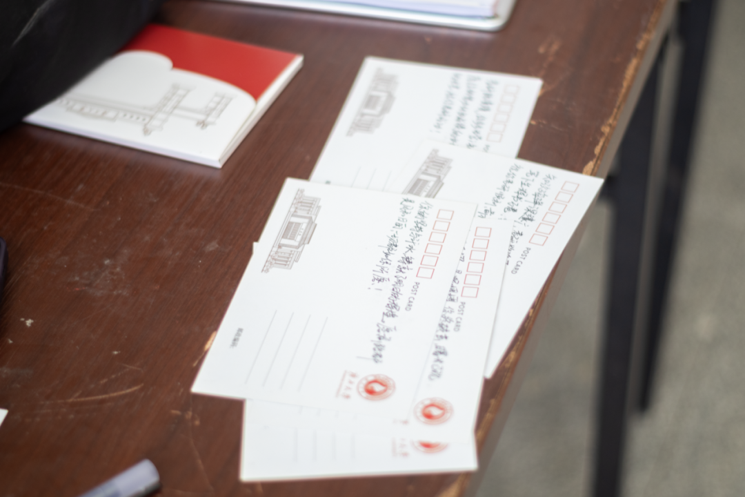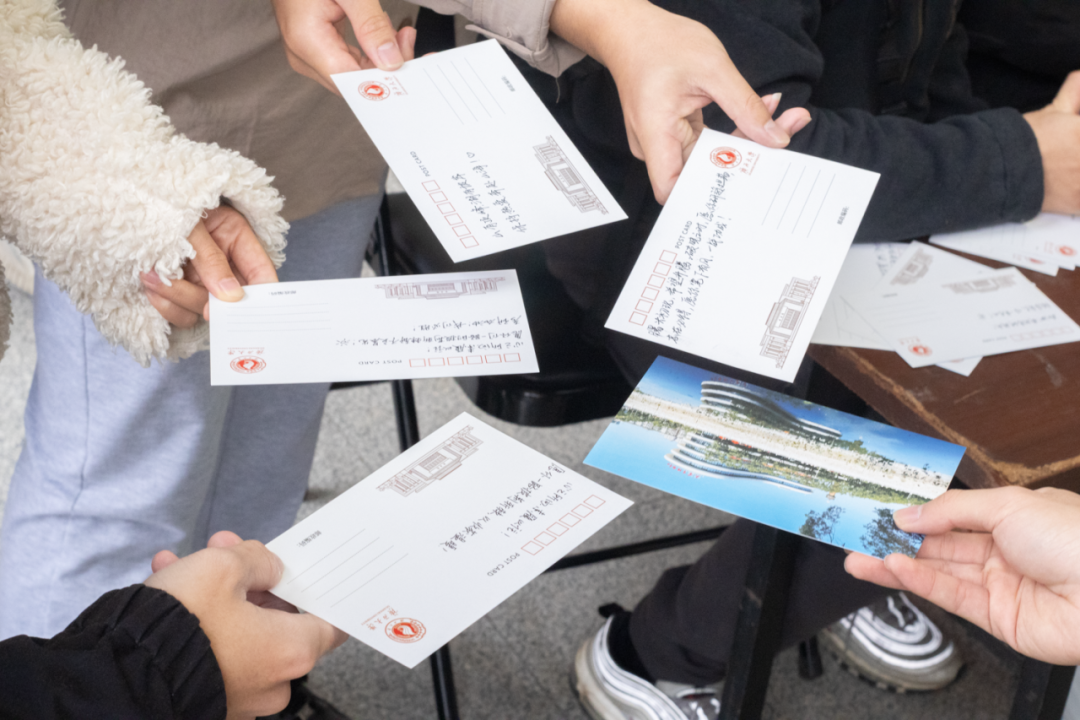 随后,同学们在一张张精致的明信片上,写下他们最真挚的祝福:“宝剑锋从磨砺出,梅花香自苦寒来”“有志者,事竟成”“世上无难事,只要肯登攀”……句句含情,满载着他们对考研学子最诚挚而深情的祝福。