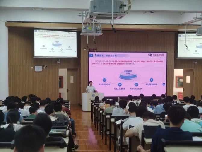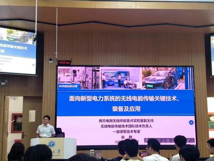 11月15日下午,南方电网无线传能重点实验室副主任、广西电网公司一级领军技术专家、高级工程师肖静在东10A-305教室开展第1期“行业大咖进课堂”暨电气工程学科前沿讲座,题为《面向新型电力系统的无线电能传输关键技术、装备及应用》。本次活动由电气工程学院主办,广西大学电力系统最优化研究所、学院团委、研究生会、学生会承办,电气工程系主任陈碧云,电气工程专业2024级全体博士、硕士研究生,部分本科生共计250余人参加。