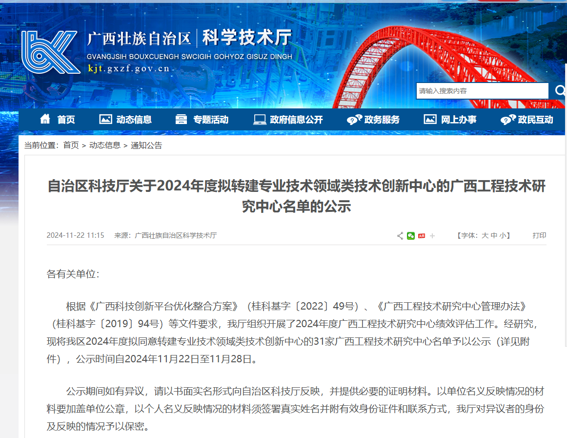 近年来,中心发表SCI论文100余篇,授权发明专利100余项,相关技术转化为产品和技术服务100余项。编写制定国际标准1项、国家标准5项、行业标准12项,获国家科学技术奖二等奖1项、日内瓦国际发明展金奖1项、广西科学技术奖一等奖2项、省部级二等奖3项等众多荣誉。