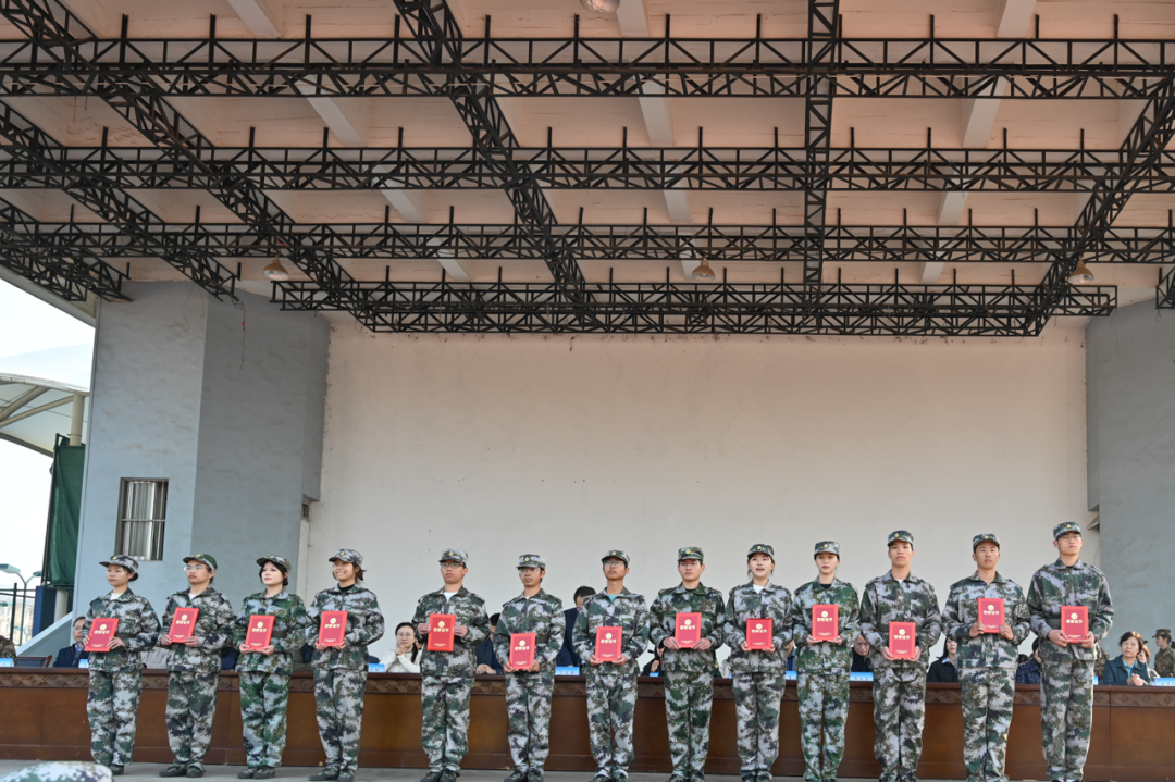 军训汇演后,校领导对此训练活动中表现优秀的连队和个人进行颁奖。