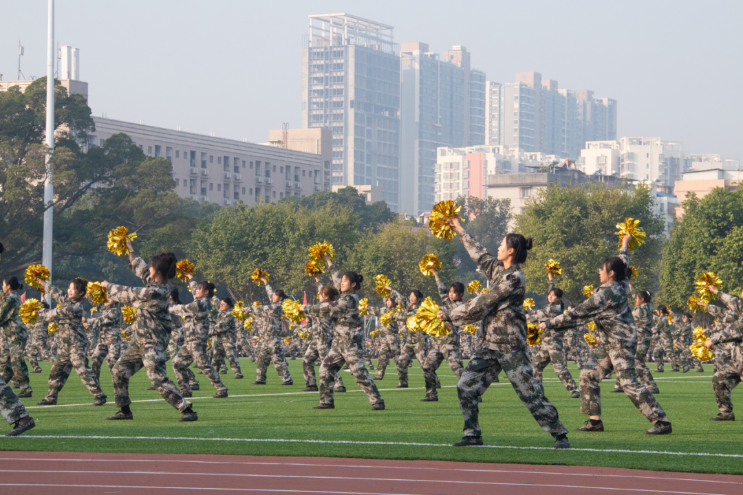 舞步飒爽,英姿尽展。女生们在开场舞中精神昂扬,在汇演中展示卓越风貌,展示青春活力。