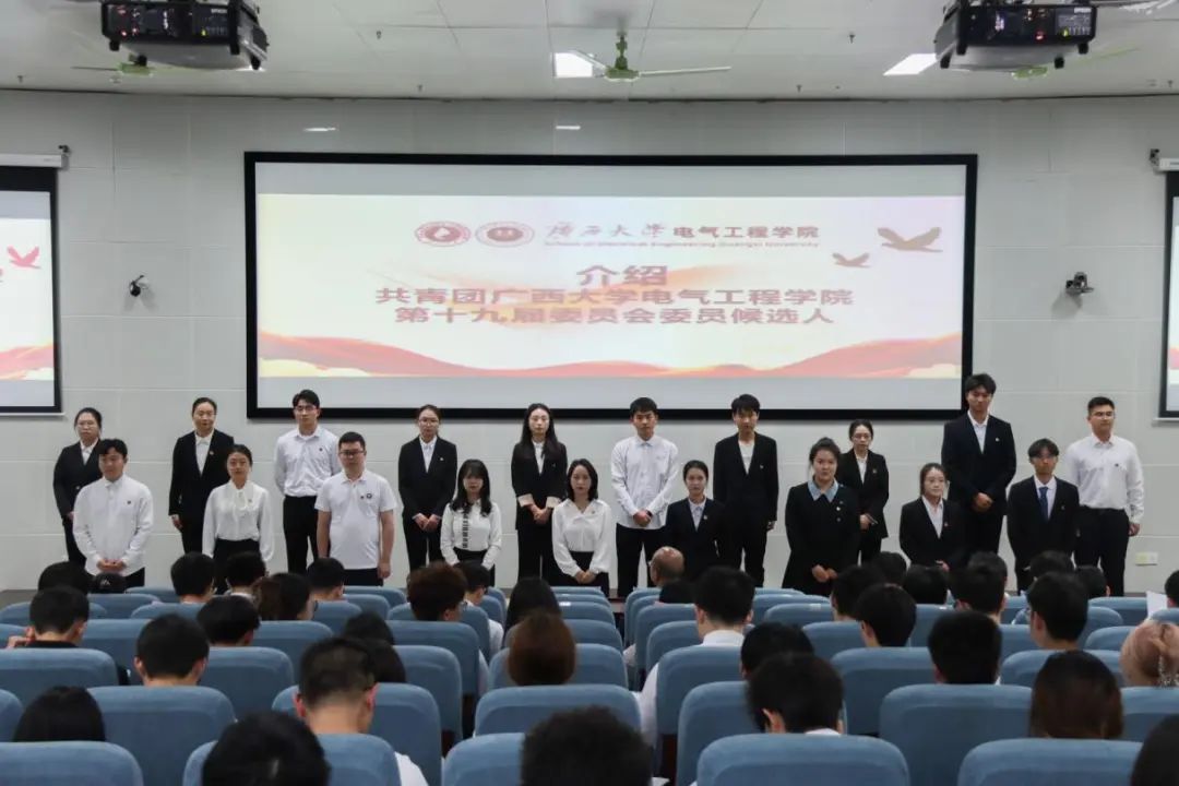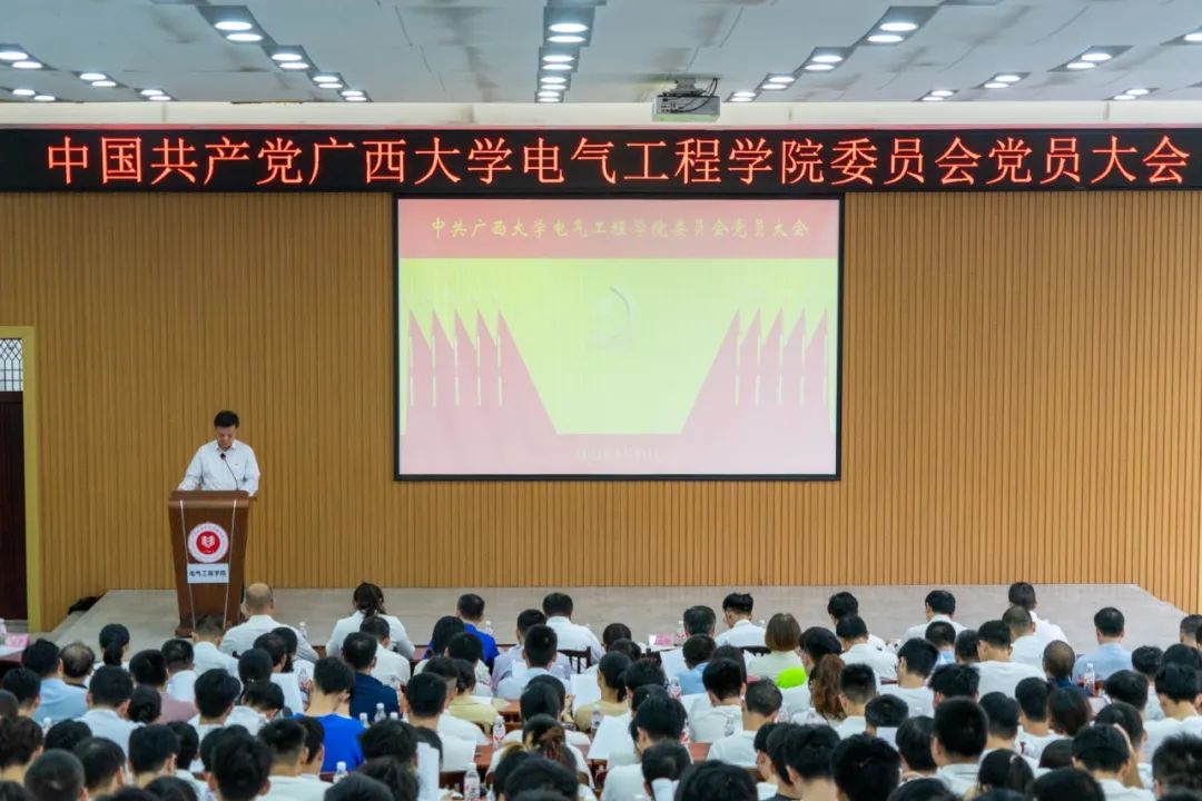 4月23日, 中共广西大学电气工程学院委员会党员大会顺利召开,学院党委书记梁志坚同志代表中共广西大学电气工程学院委员会做《凝智聚力 团结奋斗 再创学院“双一流”建设高质量发展新局面》的报告。会议选举产生了中共广西大学电气工程学院新一届委员会和新一届纪律检查委员会。