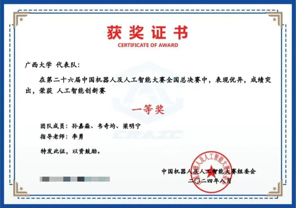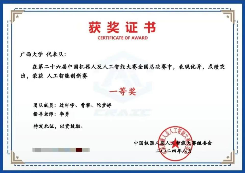 荣获2024年广西大学学生