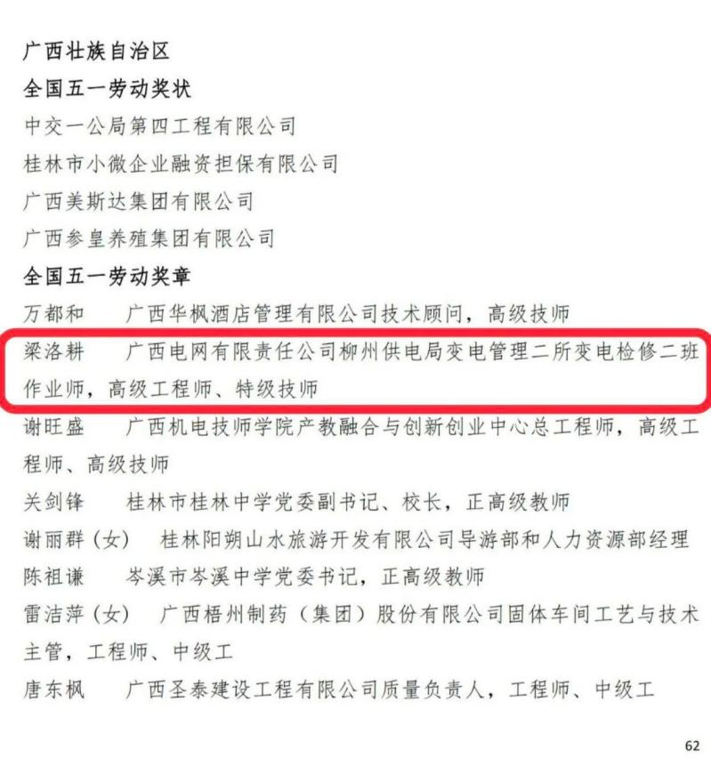 我院校友梁洛耕荣获2024年全国五一劳动奖章