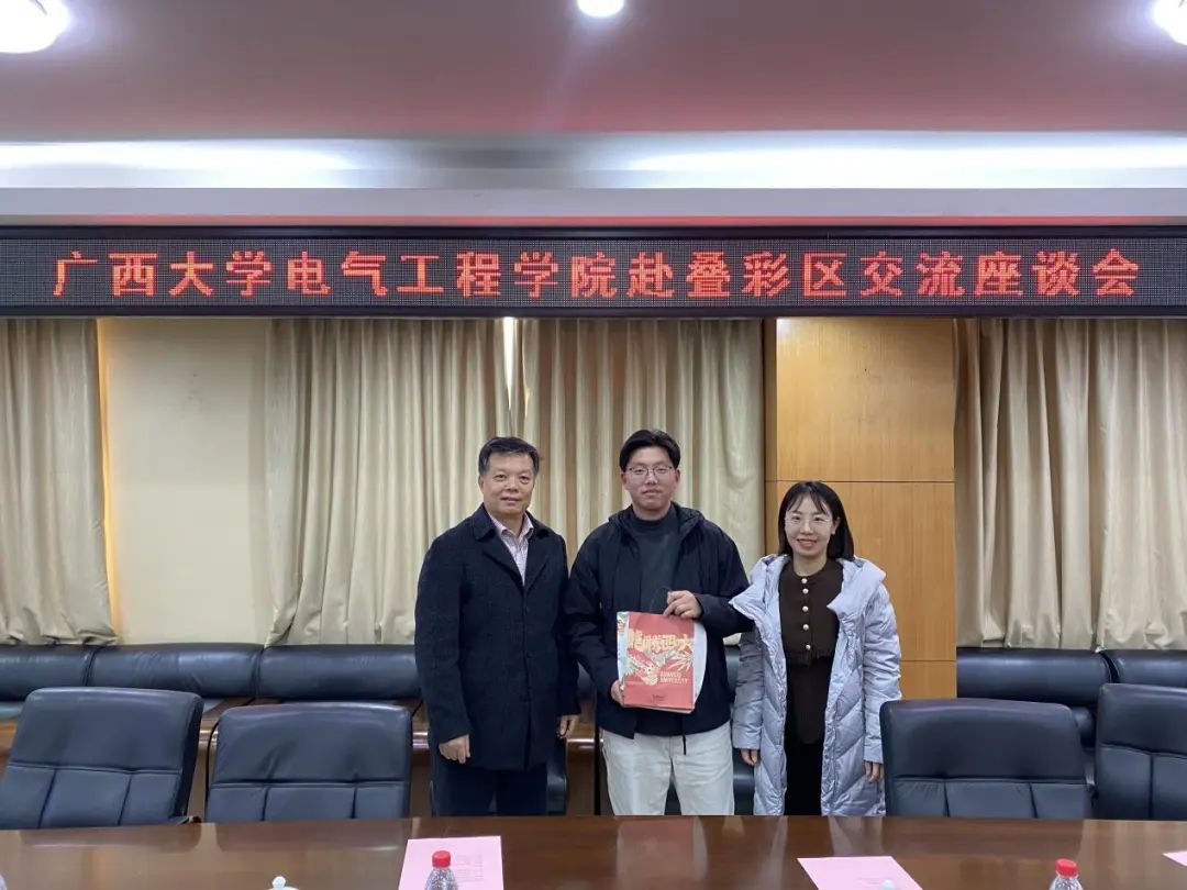 梁志坚书记在交流会上介绍了电气工程学院人才培养情况,感谢叠彩区委员会组织部对校友徐大也的栽培,并鼓励徐大也保持谦逊之心,脚踏实地,不懈奋斗,将所学知识转化为服务人民的实际行动。