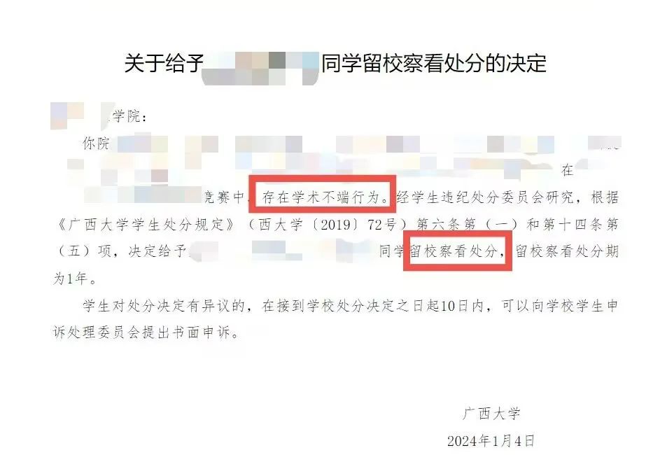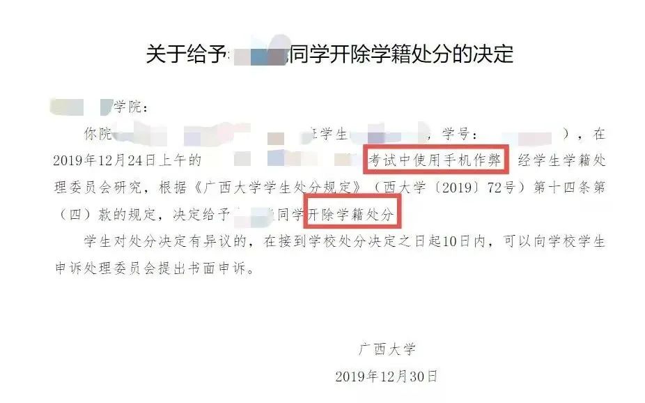 《广西大学学生处分规定》《广西大学学生考试违规处理办法》对学术不端行为、考试违规行为的认定和处理有着明确的规定,视情节轻重,给予如下纪律处分: