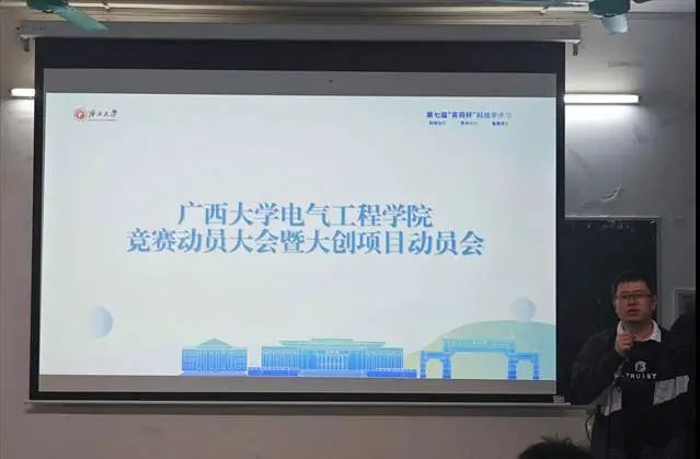 4月3日晚,由共青团广西大学委员会主办,我院团委与众创空间联合承办的广西大学第17期青荷学术沙龙暨电气工程学院第7期“电电科创”论坛活动在304教室举行。 本次沙龙由我院众创空间主席团成员张铭宇和孙在润同学担任主讲嘉宾,围绕“竞赛动员与大创申报”主题进行分享。沙龙由学院兼职团委副书记李勇老师主持,吸引了120余名本科生和研究生参与。 李勇老师主持 电创221班张铭宇同学首先介绍了“挑战杯”全国大学生课外学术科技作品竞赛与创业计划大赛、中国国际“互联网+”大学生创新创业大赛、iCAN大学生创新创业大赛等重点赛事的概况、主办单位及官网信息。他结合自身参赛经历,解读了中国机器人及人工智能大赛和睿抗机器人开发者大赛的相关赛道设置和注意事项,并鼓励同学们踊跃报名,积极投身科创实践。 大赛介绍 电自228班孙在润同学聚焦“大创”项目进行了动员分享。他按照大创简介、选题建议、组队建议、申报书撰写以及项目立项要求各个环节,系统地介绍了“大创”项目的相关事宜。此外,他还就选题、组队、申报书撰写、立项答辩等关键步骤,分享了诸多实用的建议与心得,并祝愿同学们在新一轮项目申报中取得佳绩。 大创动员 本次活动聚焦人工智能与机器人类科学竞赛的备赛技巧及“大创”项目申报要点,通过规则解析、案例复盘、流程梳理、材料拆解等环节,从赛事认知到实践细节、从创新思维到材料规范等多个维度,以朋辈视角为同学们提供了切实可行的备赛指南。参会同学们纷纷表示,这次活动为自己参与本学期的学科竞赛和“大创”项目注入了信心和动力。