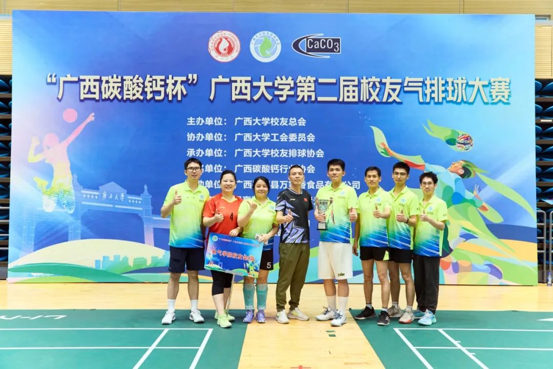 4月19日—4月20日,由广西大学校友总会主办、校工会协办、校友排球协会承办的“广西碳酸钙杯”第二届校友气排球大赛在校体育馆火热开展。我院积极动员往届校友组成代表队参赛,凭借精湛的球技、默契的战术配合和永不言弃的竞技精神,在小组赛、淘汰赛中连克强敌,最终获得赛事亚军。