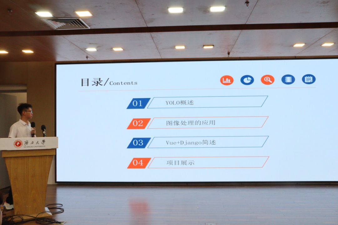 2022级电气工程创培班曹攀同学详细介绍了YOLOV8算法在光伏组件巡检系统中的应用。首先,他向大家分享了他在实验数据中的发现,BCS-YOLOv8在检测精度方面表现突出,显著优于其他模型。同时,他向大家解析了Vue技术,该技术能够实现双向数据绑定,并以基于视觉的光伏电站无人机智能巡检系统为例,分析了YOLOV8算法在其中的应用。