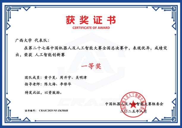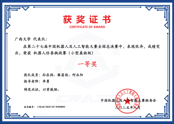 近日,第二十七届中国机器人及人工智能大赛落下帷幕,我院在本届比赛中荣获国家级奖项25项,其中一等奖6项、二等奖8项、三等奖11项;省级奖项53项,包括一等奖16项、二等奖21项、三等奖16项。此次大赛充分展现了学院在机器人及人工智能领域的实力与教学成果,是学院长期以来注重学科建设、创新实践与人才培养的集中体现,也为相关学科的持续发展与高水平人才培养注入了新动能。