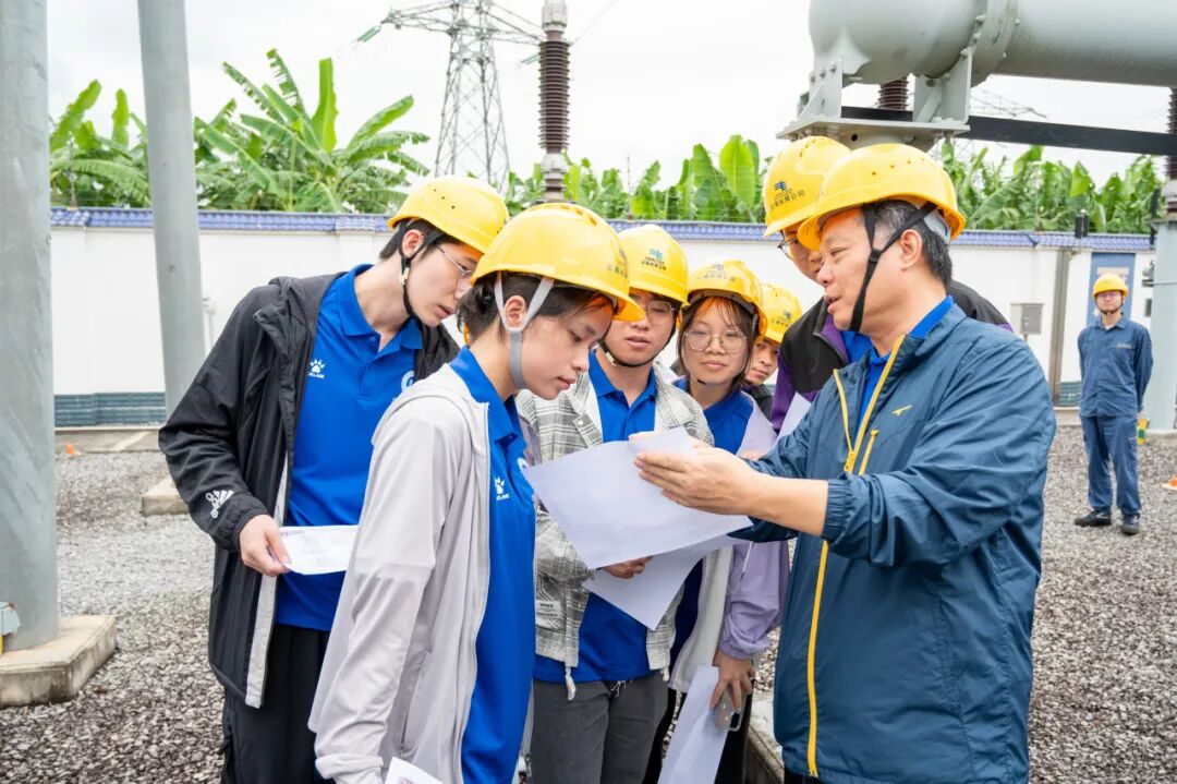 实践团还走进防城港供电局110kV深沟变电站。110kV深沟至芒街联网工程,起于广西东兴市深沟110kV变电站,止于越南芒街110kV变电站,是广西第一条跨国输变电工程,今年也是防城港供电局向越南开展送电业务的第20个年头,为越南当地经济发展提供了稳定的电力供应。来自广西东兴市的实践团成员苏悦萍表示:“我真切感受到了我国与东盟国家在电力领域的合作潜力,‘一带一路’不再是一个抽象的概念,我们这代人正有幸参与书写区域能源合作的新篇章。”