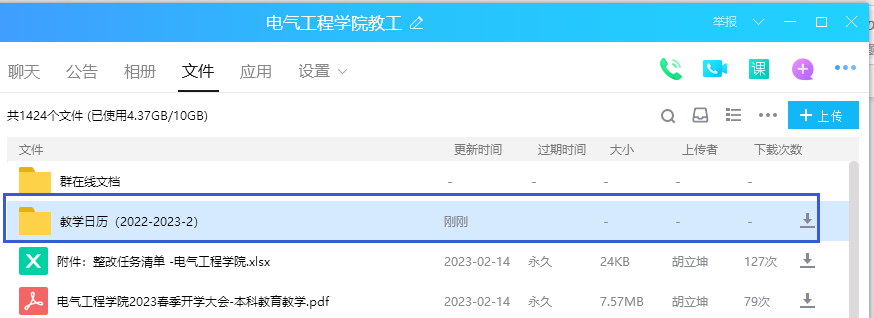 操作方式:进群界面—文件—教学日历(2022-2023-2)文件夹—上传