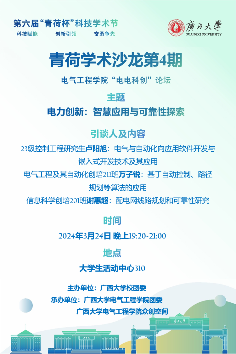 下一条:关于举办广西大学青荷学术讲堂||电气工程学院“行业工匠”大讲堂(第1期)的通知