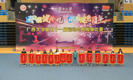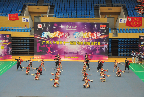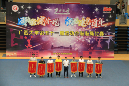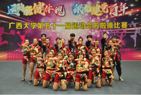 11月6日晚,广西大学第五十一届啦啦操比赛在西校园体育馆如约举行。赛前捷报,我院篮球队获“道德风尚奖”以及“男子组第四名”的佳绩。此次大赛中,我院啦啦操斩获大学院组三等奖及“最具活力奖”,孙安东同学获得“优秀运动员”称号。