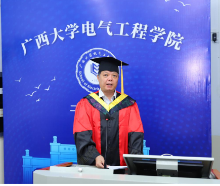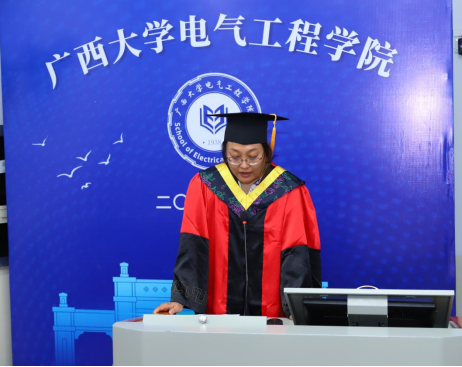 逐风追电,筑梦飞行。6月26日上午,广西大学2021届毕业生典礼暨学位授予仪式在主会场汇学堂拉开序幕,电气工程学院在第十教学楼设立三个分会场观看主会场现场转播。院领导梁京章、双丰、梁志坚、刘辉、黎静华、于婷,学院学位评定分委员会委员、研究生导师代表、毕业班班主任等出席典礼分会场。院党委副书记梁志坚主持电气学院分会场仪式。