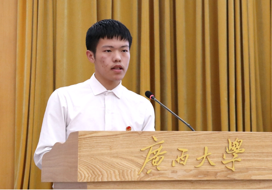 第十九届学生会主席团代表蒙军宣读倡议书