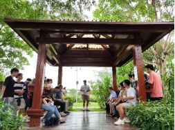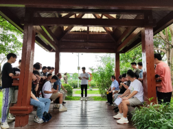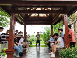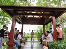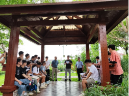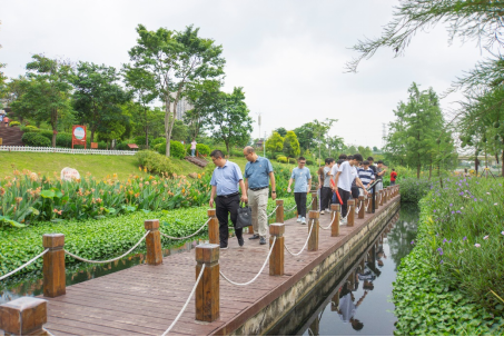 参观过程中,大家沿途步入湿地公园的一处小亭内,李道洋书记向各位党员们阐述此次党日活动的重要意义。李道洋书记表示,党员同志要牢记习近平总书记嘱托,广西生态优势金不换,要坚持把节约优先、保护优先、自然恢复作为基本方针。徐俊华书记随后补充道,两支部的学生党员们今后参加工作后,要时刻把人与自然和谐相处作为基本目标,使八桂大地青山常在、清水长流、空气常新,让良好生态环境成为人民生活质量的增长点、成为展现美丽形象的发力点。