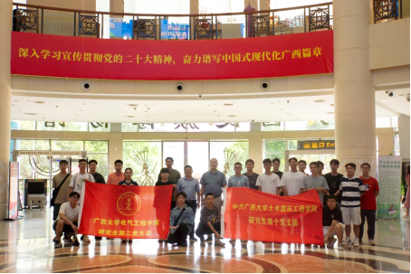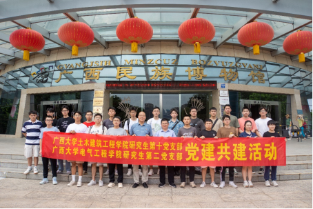 党的十八大以来,以习近平同志为核心的党中央对广西工作高度重视,两次亲临广西,为新时代广西发展指明了前进方向、提供了根本遵循。为亲身感悟习近平生态文明思想、丰富党员对民族文化的认识,同时进一步促进两支部党员之间的密切交往,土木建筑工程学院研究生第十党支部联合电气工程学院研究生第二党支部于6月14日共同开展“循习近平总书记调研之路,看新时代壮乡发展”党建共建活动。支部党员先后前往那考河湿地公园和广西民族博物馆进行参观学习,并于那考河湿地公园举行读书分享会活动。