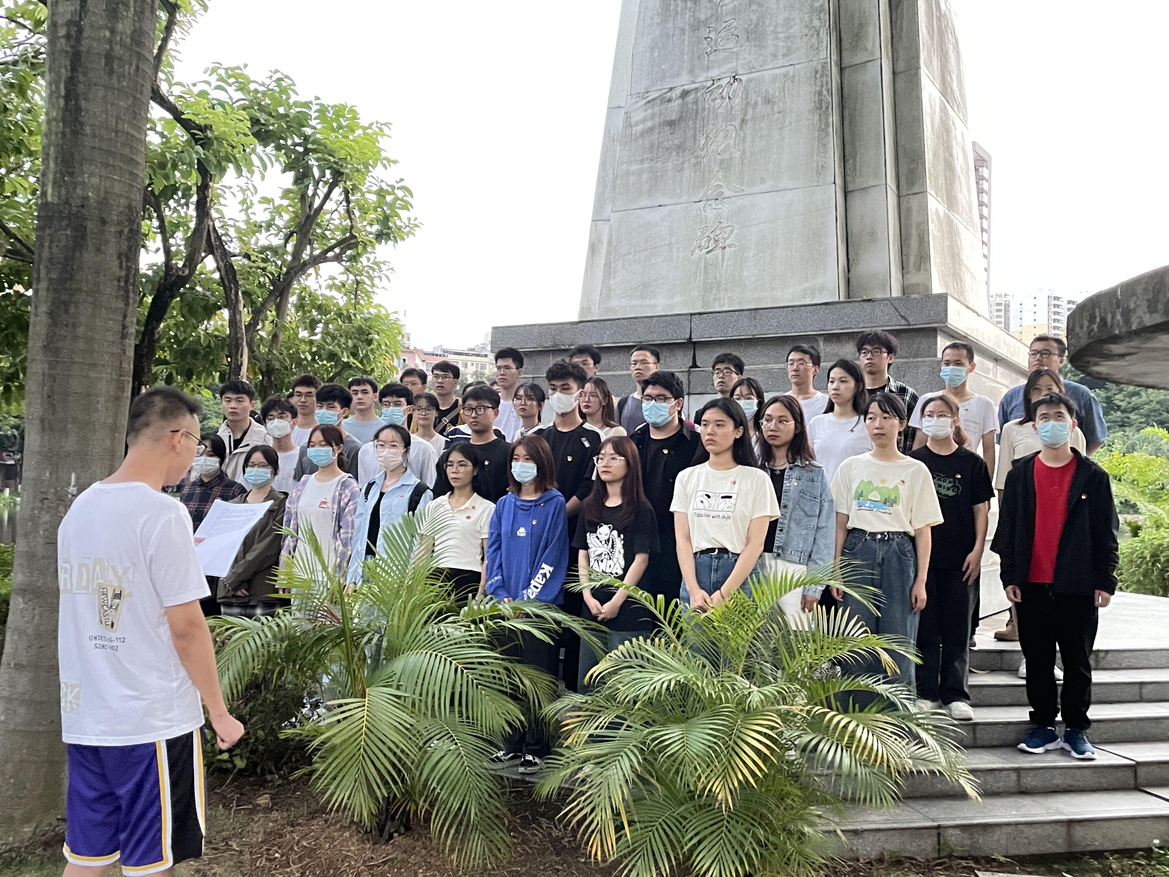 2022年11月27日,电气工程学院本科生第三党支部在广西大学学生民主运动纪念碑下开展了重温入党誓词兼支委职责培训主题党日活动。本次党日活动旨在重温入党时的决心和信念,对支部未来工作进行规划,同时介绍党支部支委分工,为支部领导班子培养接班人。