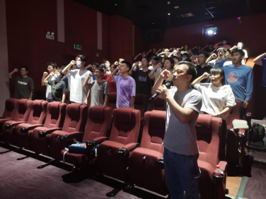 观影结束后,在场的党员同志们在本科生第四党支部书记石建有老师的带领下,重温入党誓词。作为一名共产党员,我们要时刻牢记自己在举起右手面对党旗进行宣誓的时候,那种激动的心情,不断提醒自己,要在今后的漫长的学习工作中,坚定理想信念,通过自己不懈的努力为党旗添光彩。