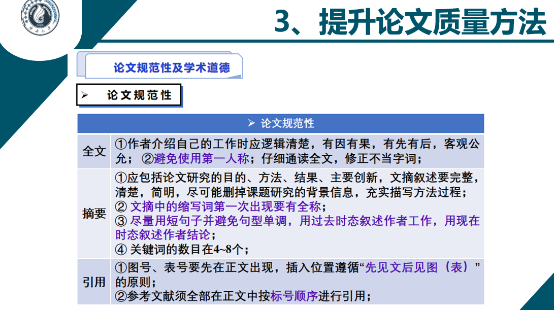 习姗同志为大家分享了论文的撰写经验,从文献检索及管理,论文基本结构、提升论文质量方法、期刊投稿流程这4个方面进行了讲述。首先,用关键词与作者姓名(机构)检索文献,有时关键词的微小变化会引起检索结果的巨大变化。检索文献网站有Web of Science、谷歌学术、百度学术、bing等。之后,介绍了论文的基本框架以及撰写各个部分的注意事项。最后,习姗同志介绍了期刊的投稿流程。